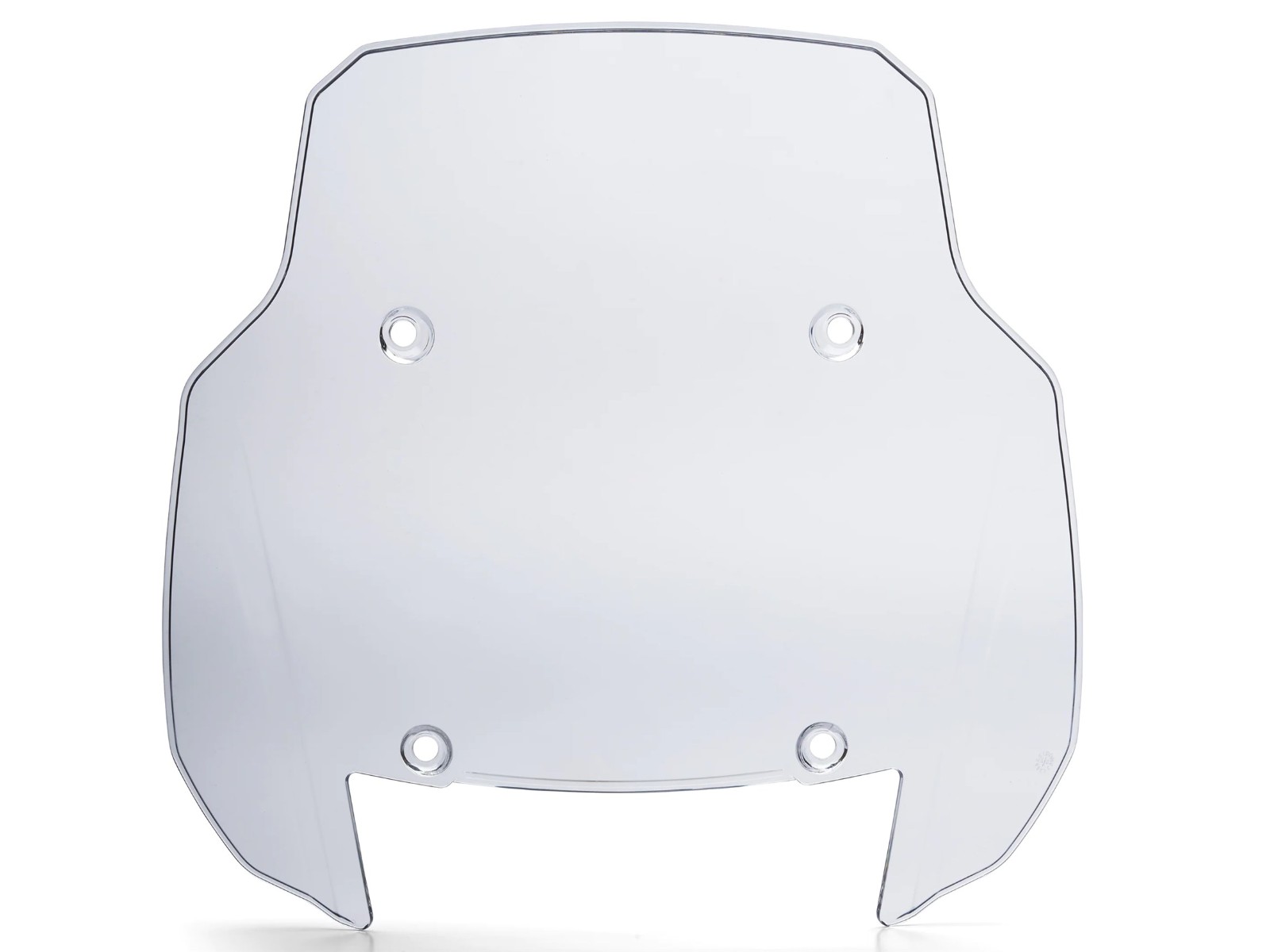 Diese Windschutzscheibe ist etwa 11 cm niedriger als die der Serienausstattung und ermöglicht so den meisten Fahrern über die Scheibe hinwegzusehen.