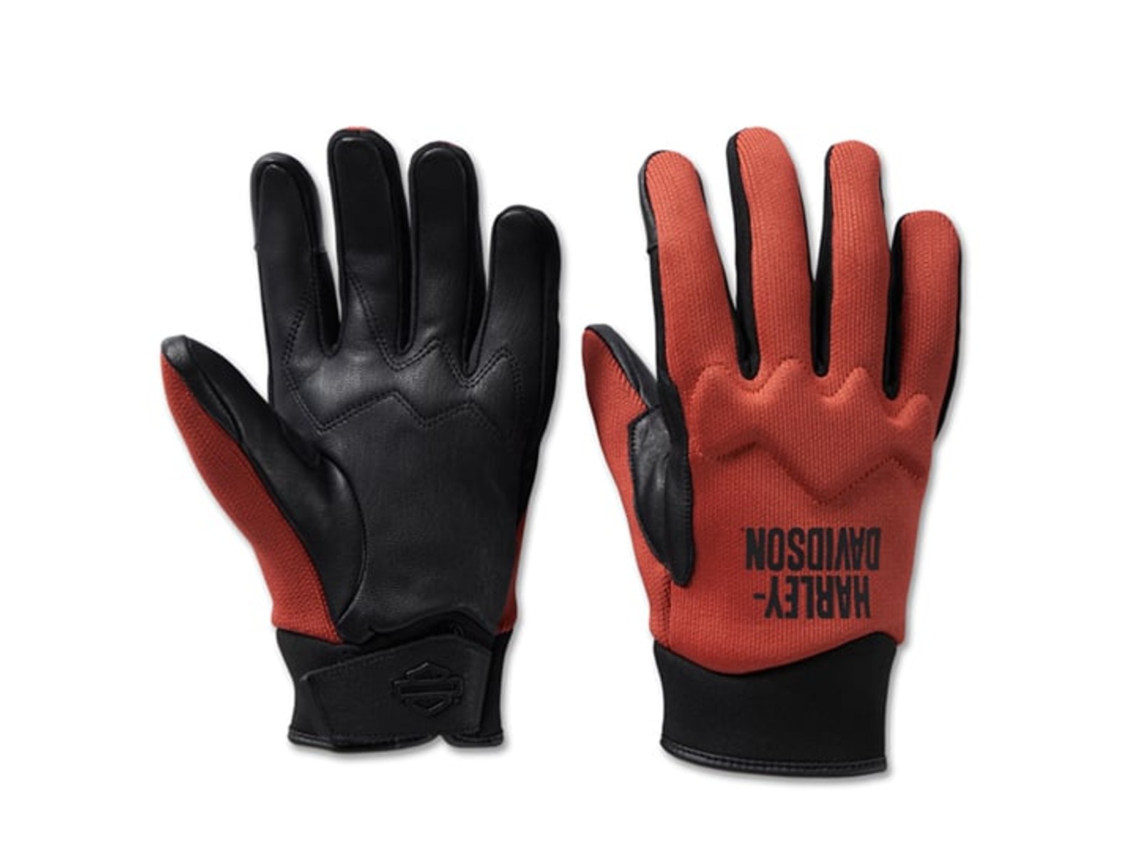 Passform & Mobilität: 30° vorgekrümmte Finger. Neoprenmanschette mit Lederzug und Velcro®-Verschluss. Materialien: Stretch-Strick und Nylon-Neopren. Trikot-Futter. Eigenschaften: Gepolsterte Handfläche und Knöchel. Touchscreen-kompatibel. Design-Details: Farblich abgesetzte Nähte. Grafiken: Siebdruck. Zertifizierung: Entspricht EN 13594:2015