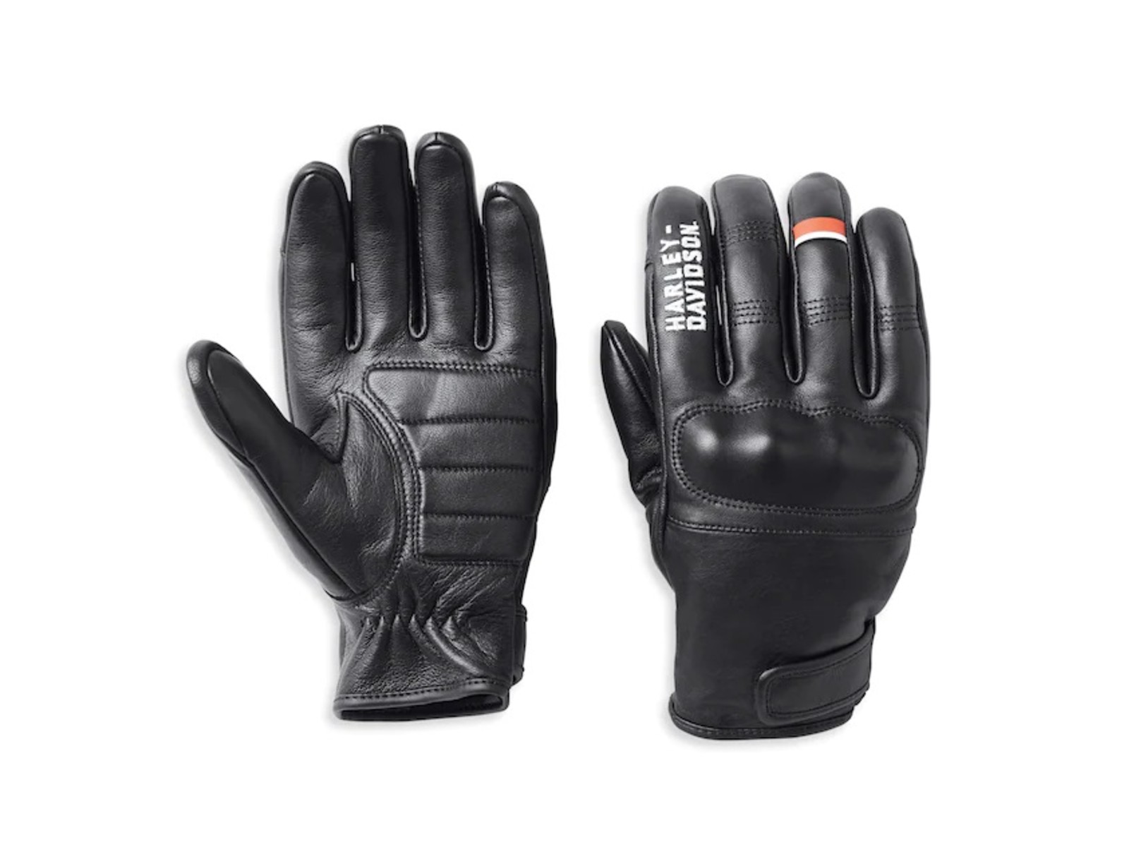 Schütze Deine Hände mit unseren South Shore Leather Gloves, während Du die Kilometer abspulst. Das Ziegenleder sorgt für ein strapazierfähiges Äußeres, das den Elementen trotzt. Komfort-Nähte, Touchscreen-Funktion, auffällige Streifen und gestickte Motive garantieren eine großartige Kombination aus Funktionalität und Stil. • Passform und Bewegungsfreiheit: Komfort-Nähte. Um 30° vorgekrümmte Finger. Klettverschluss am Handgelenk. • Materialien: Ziegenleder. Trikotfutter aus 100 % Polyester. • Additional Features: Mit gepolsterter Handfläche und Touchscreen-geeignet. • Design-Details: Plastischer H-D Streifen am Finger. • Motive: Direktstickerei. • Certification: EN 13594:2015