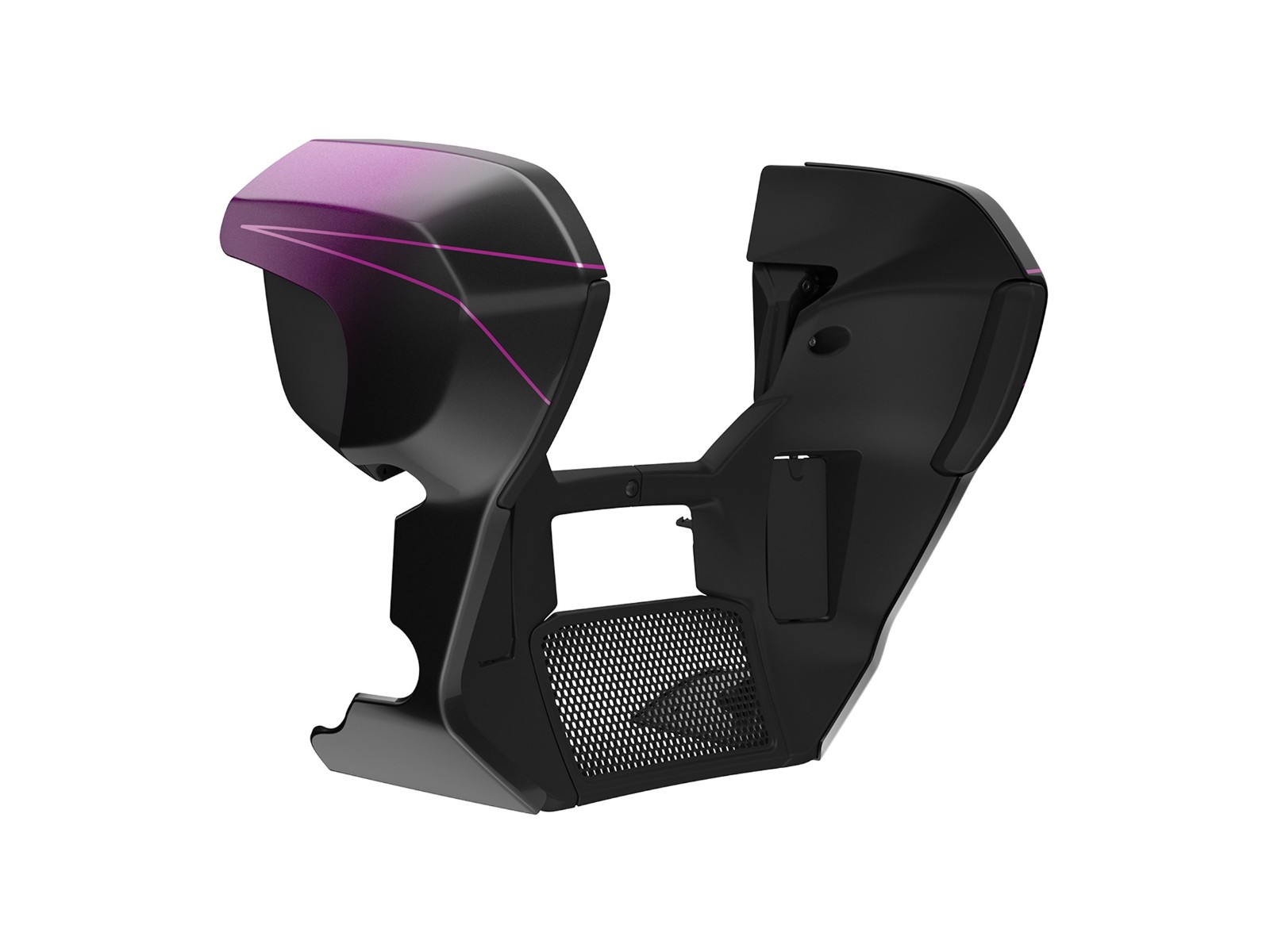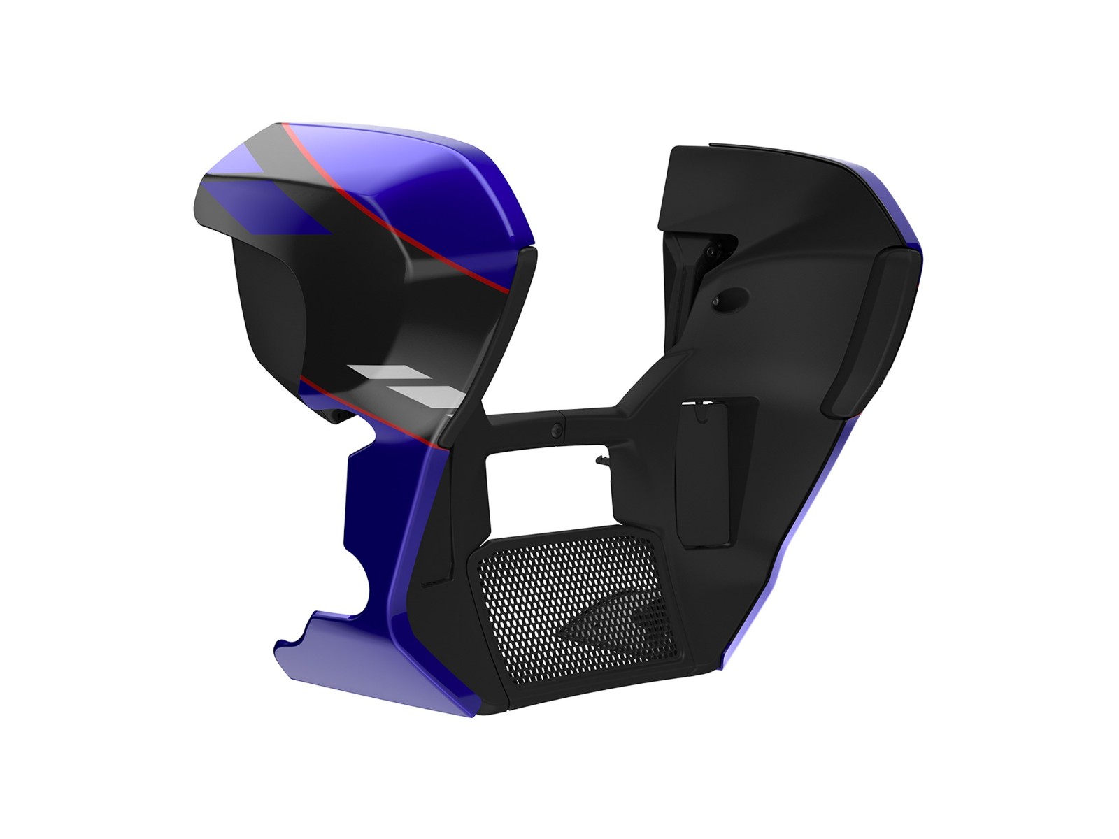 Die Verkleidungsunterteile wurden entwickelt, um den aerodynamischen Komfort für den Fahrer zu verbessern, indem sie zusätzlichen Wind- und Wetterschutz im Beinbereich bieten. Entworfen unter Verwendung von CFD-Tools (Computational Fluid Dynamics), Windkanalanalysen und subjektiven Tests unter realen Bedingungen.