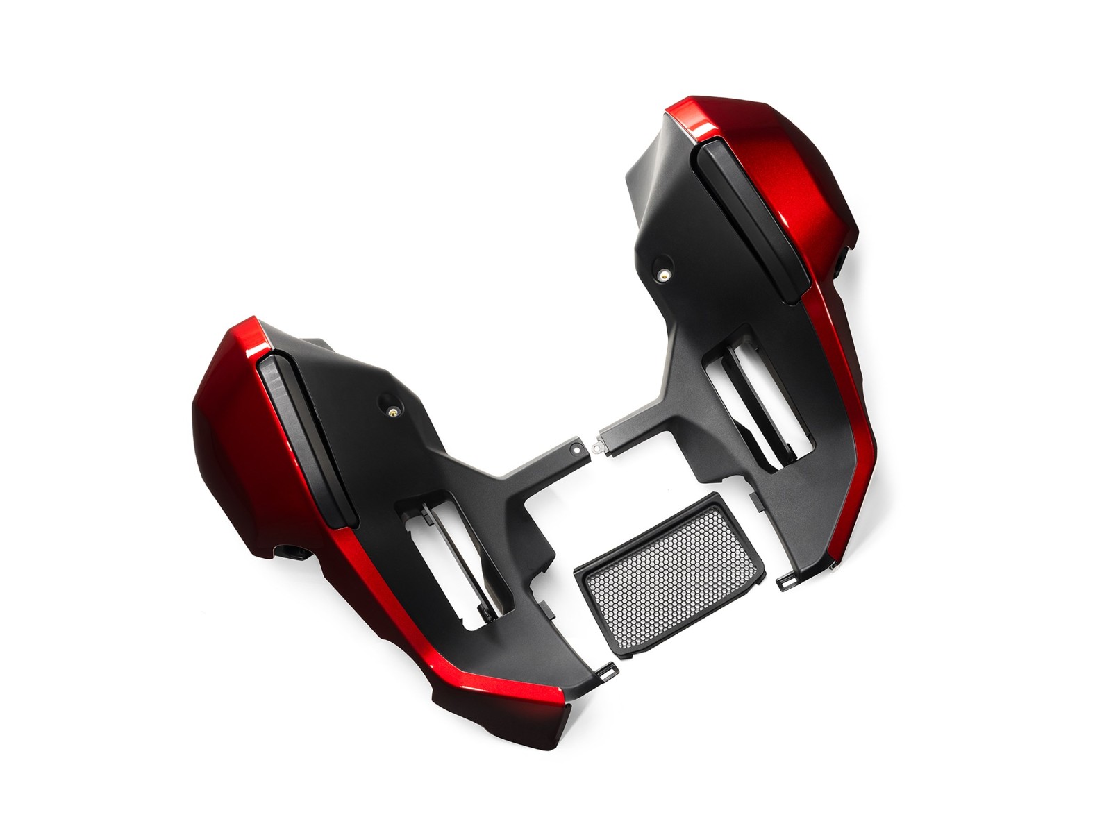 - Das Kit enthält die linke und rechte untere Verkleidung, Staufachdeckel und alle erforderlichen Befestigungsteile.