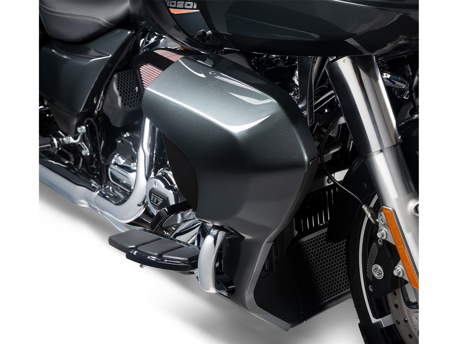- Mit abnehmbarer Blende an der Vorderkante für die Montage der integrierten LED-Nebelscheinwerfer Art. Nr.: 68000453, erhältlich bei Harley-Davidson® Genuine Motor Parts & Accessories (separat erhältlich).