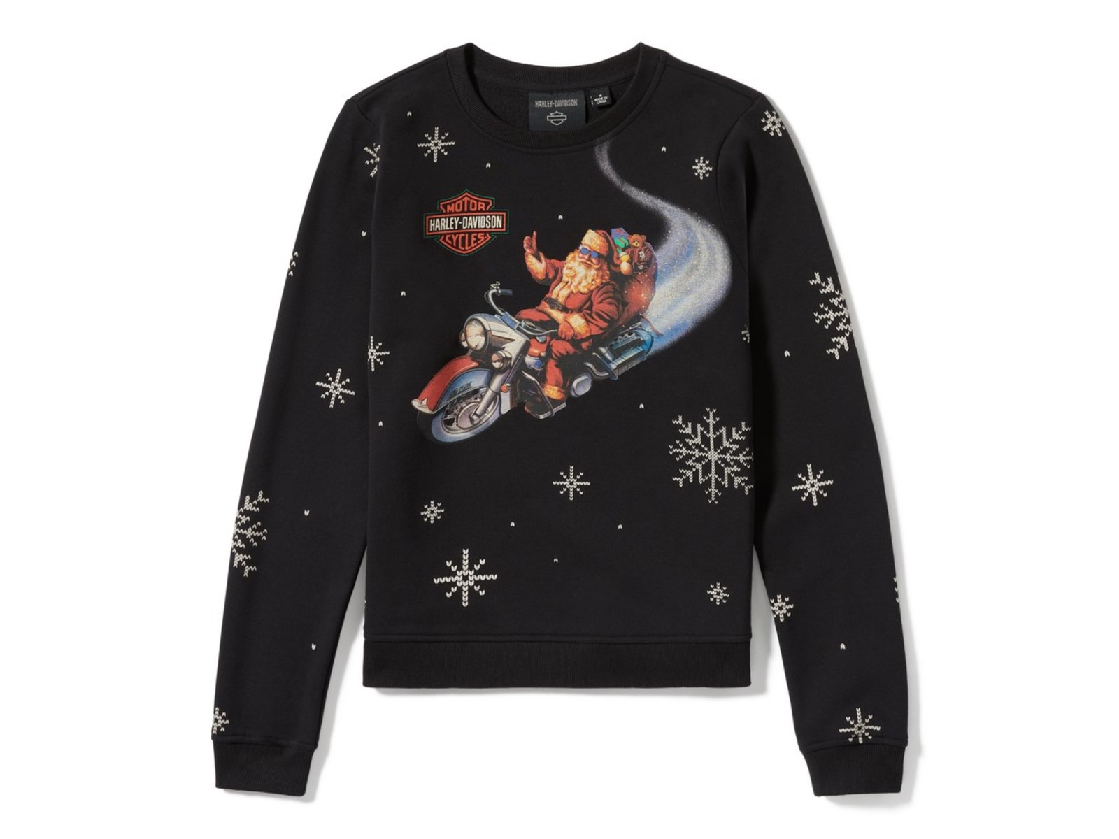 Unser Happy Harley® Days Fleece Sweatshirt für Damen ist mit speziellen Motiven verziert, darunter auch ein Upgrade des Schlittens des Weihnachtsmanns. Damit wirst du zweifellos einen großer Hit bei den Weihnachtsfeiern mit deiner Motorrad-Familie landen – aber nur, wenn du dir dein Exemplar sicherst, bevor er ausverkauft ist.