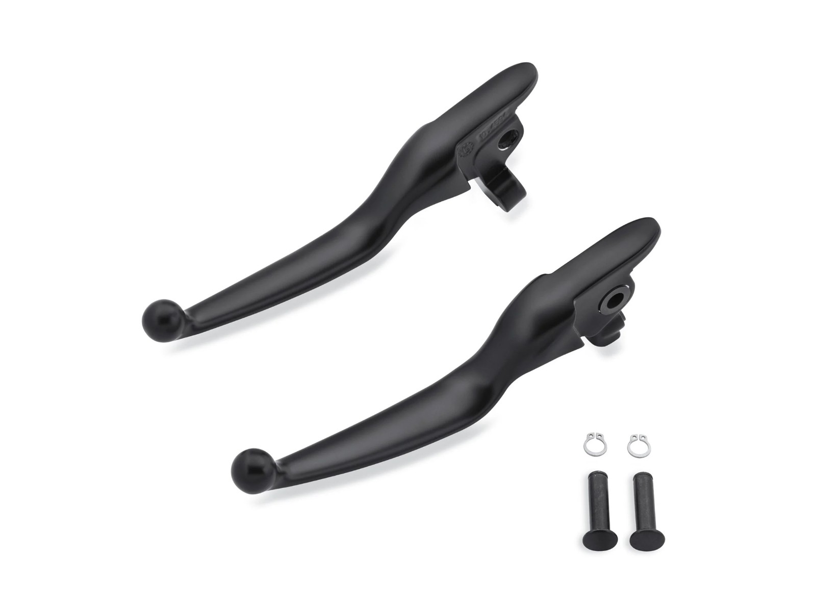 Das Custom-Finish der gegossenen Aluminiumhebel ist perfekt auf die verchromten Lenker-Bedienelemente aus dem Zubehörprogramm abgestimmt oder ergänzt die originalen schwarzen Komponenten.