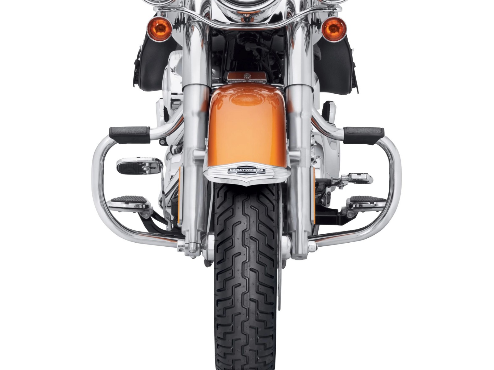 Die fließende Form dieses Motorschutzbügels ergänzt den traditionellen Look des Bikes.