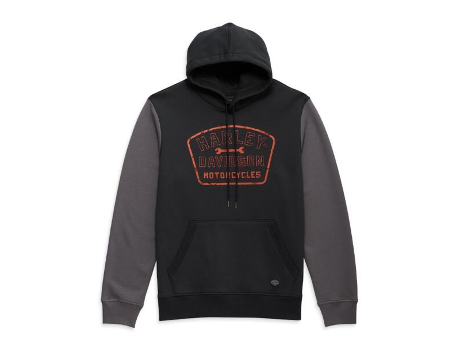 Der Original Harley-Davidson Herren Pullover-Hoodie Wrench Crew in limitierter Auflage hält Sie bei einer Fahrt durch die malerische Herbstlandschaft warm. Die Kombination aus Baumwolle und Polyester-Fleece in traditioneller oder schmaler Passform sorgt für eine warme und atmungsaktive Passform. Sehen Sie sich die gestickten Grafiken an – ideal für den Fahrer, der gerne in der Garage bastelt. Aber handeln Sie schnell, denn wenn dieser Kapuzenpulli für Männer einmal weg ist, ist er weg.