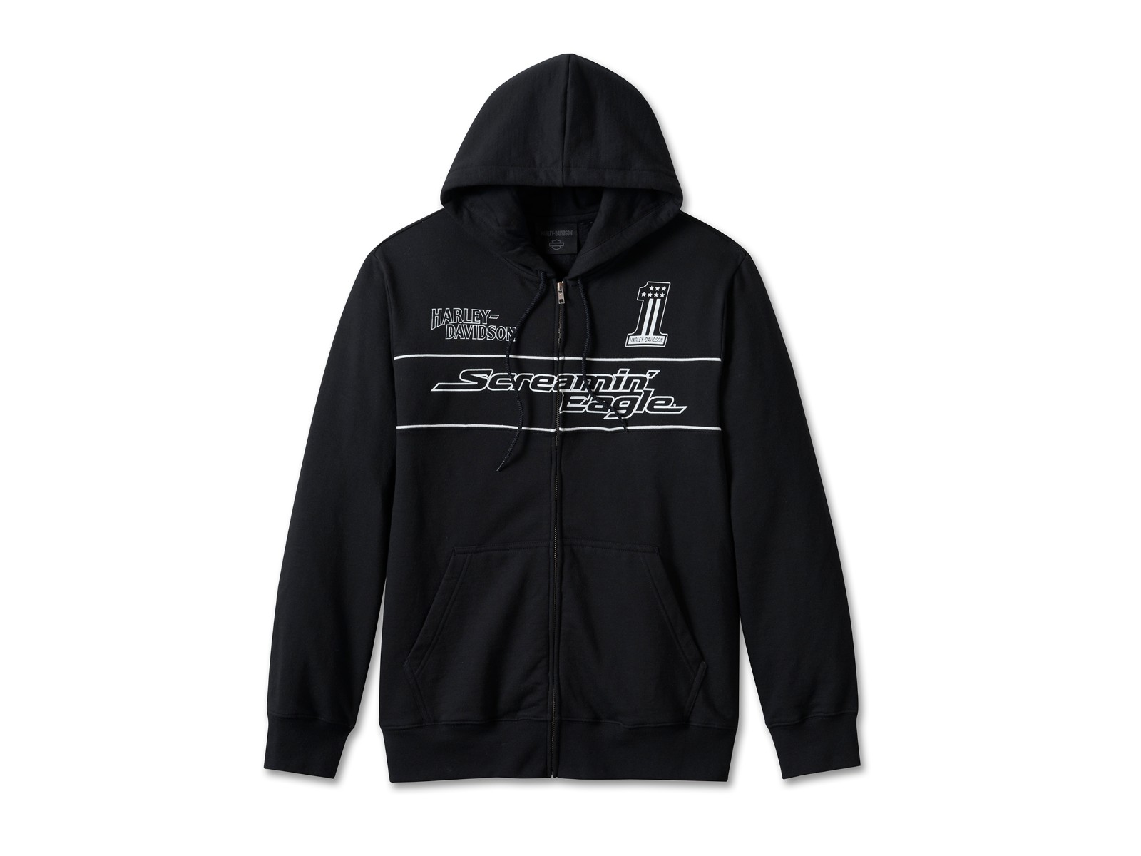 Materialien: 50% Baumwolle, 50% Polyester, mittelschweres ringgesponnenes Fleece. Verschluss: Reißverschluss vorne. Taschen: Kängurutasche. Design-Details: Brustbesatz. Kontrastfarbene Brustpaspel. Mit Jersey gefütterte Kapuze mit Kordelzug. Rippstrickbündchen an Ärmeln und Saum. Grafiken: Soft-Hand-Druck.