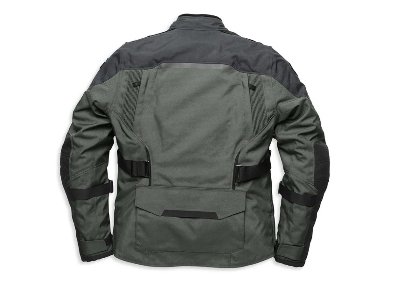 Angst vor schlechtem Wetter? Dafür gibt es in dieser vielseitigen und für jedes Wetter geeigneten Jacke wirklich keinen Grund. Sie ist ausgestattet mit einer direkten Belüftung gegen Hitze, wasserdichtem Material gegen Regen und einem Thermo-Futter gegen Kälte. Aufgewertet mit REV‘IT! Seeflex CE Level 2 Schulter- und Ellbogenprotektoren sowie abriebfestem Obermaterial. Perfekt geeignet zum Kombinieren mit Hosen und anderen unverzichtbaren Produkten aus unserer Grit Adventure oder Passage Adventure Kollektion. • Gegen die Hitze: Das VCS Aquadefence Belüftungssystem verbessert die Luftzirkulation bei warmem Wetter. Die Verschlussknöpfe können problemlos mit einer Hand (auch mit Handschuh) geöffnet und geschlossen und bei geöffnetem Verschluss fixiert werden. Im geöffneten Zustand lenkt das VCS Aquadefence System den Fahrtwind direkt auf den Körper. • Gegen die Kälte: Herausnehmbares Thermofutter, das mit dem mitgelieferten wasserdichten Futter kombiniert werden kann. • Gegen den Regen: Das herausnehmbare Futter mit Hydratex® 3L Membrantechnologie ist wind- und wasserdicht sowie außerordentlich abrieb- und reißfest. Das Futter kann mit dem mitgelieferten Thermofutter kombiniert werden. • Passform und Bewegungsfreiheit: Höhenverstellung über verstellbare Träger. • KOMFORTFUNKTIONEN: REV’IT! Seeflex CE Level 2 Protektoren an Schultern und Ellbogen. Das PW Shell 500D Textilgewebe bietet hervorragende Abrieb- und Reißfestigkeit sowie exzellente Strapazierfähigkeit. • Design-Details: Die Jacken und Hosen können ausgetauscht und miteinander kombiniert werden. • Materialien: Ripstop-Gewebe aus 100 % Polyester. • Certification: Zertifiziert gemäß EN 17092-3:2020.