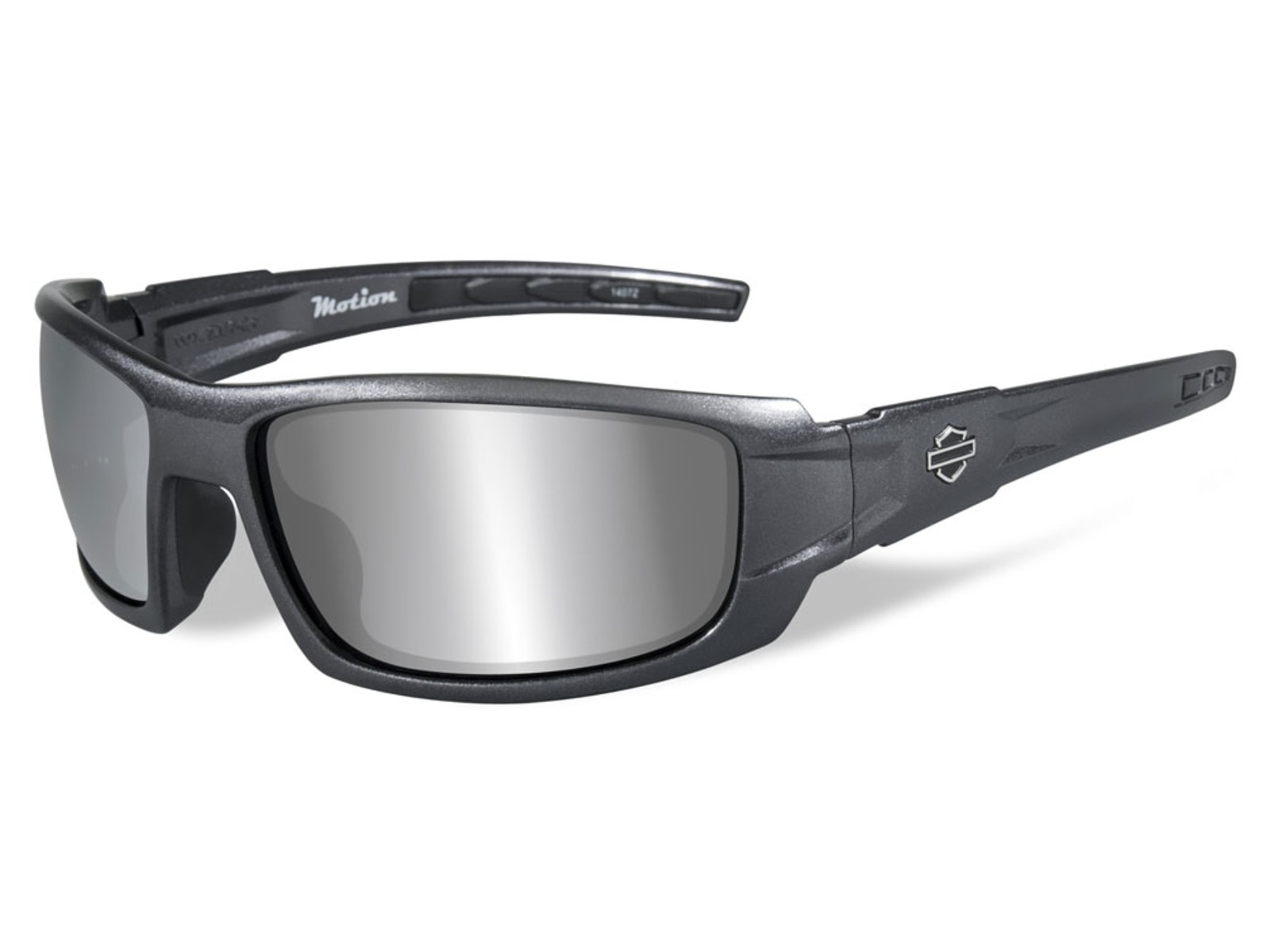 grauer Rahmen mit Harley-Davidson® Bar & Shield Logo am Bügel und Smoke Grey Silver Flash Linsen