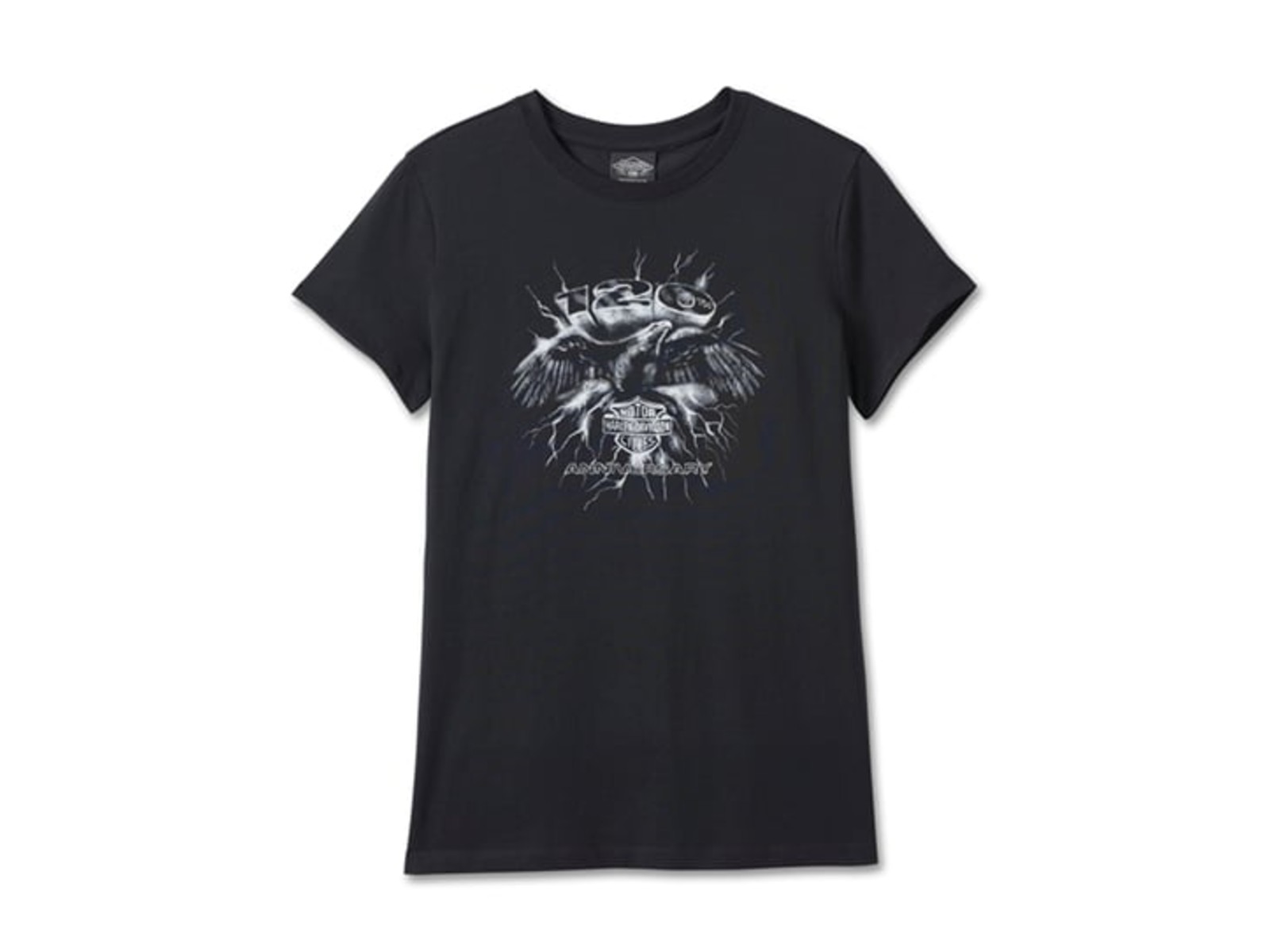 schwarzes T-Shirt mit großem, weißem Harley-Davidson® 120th Anniversary Logo vorne